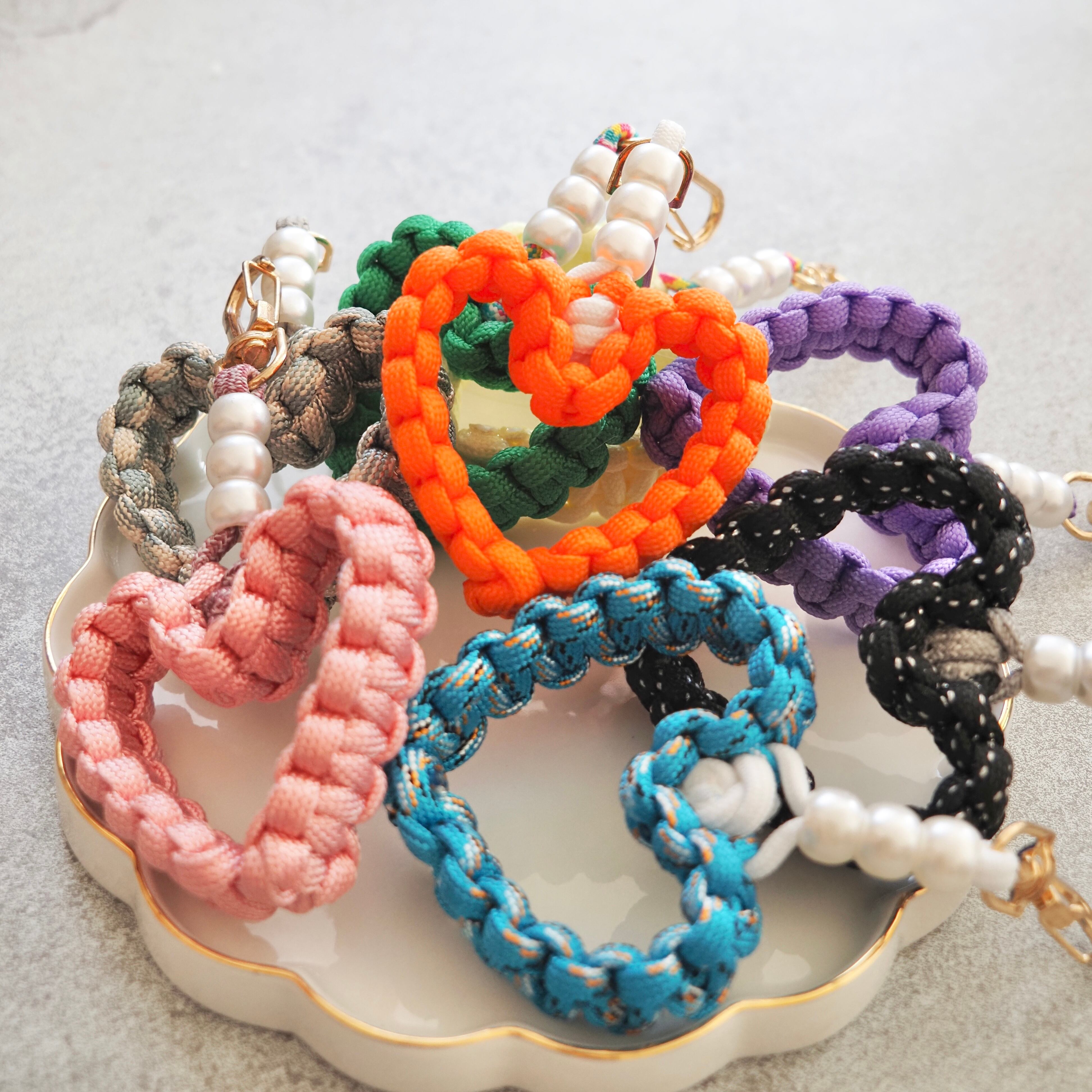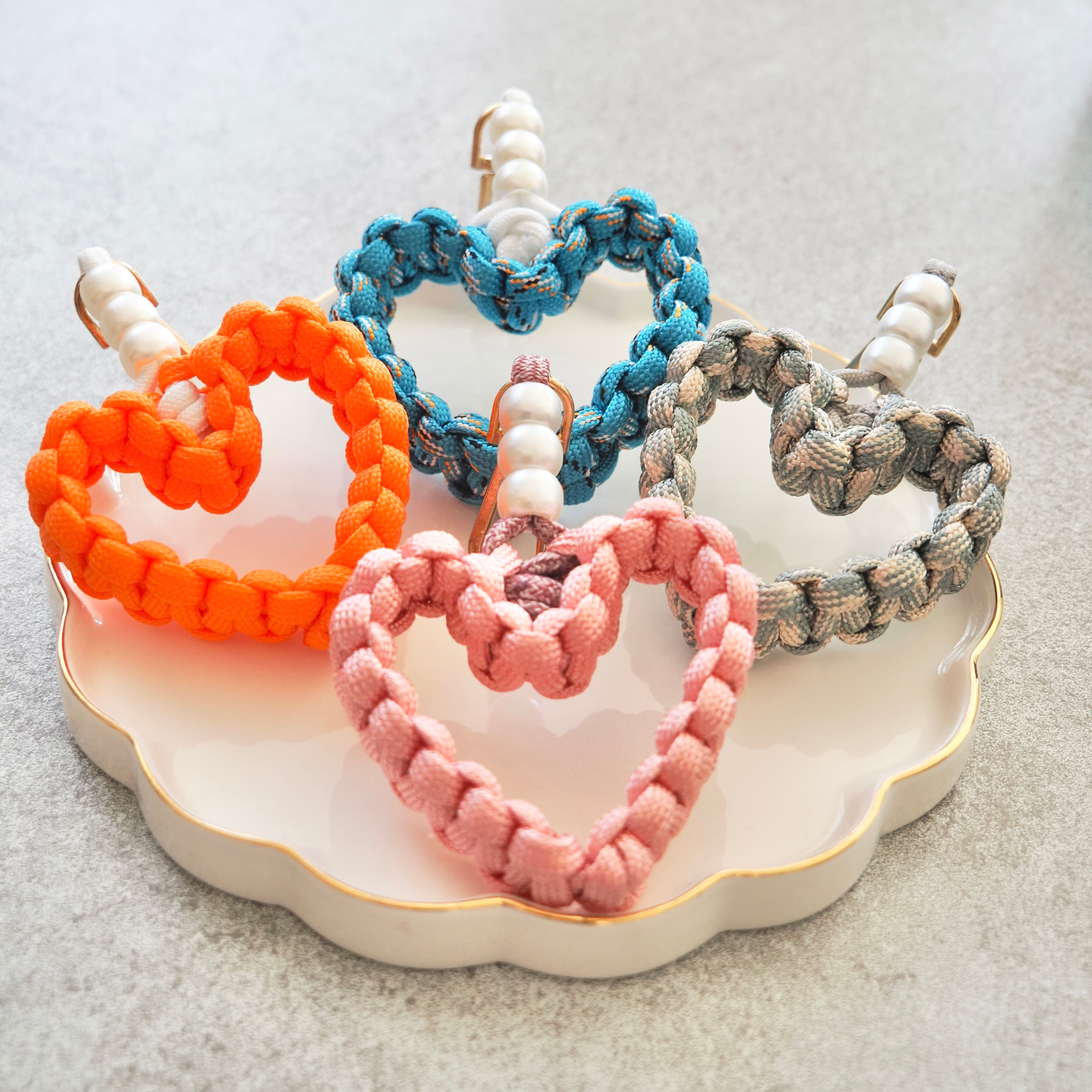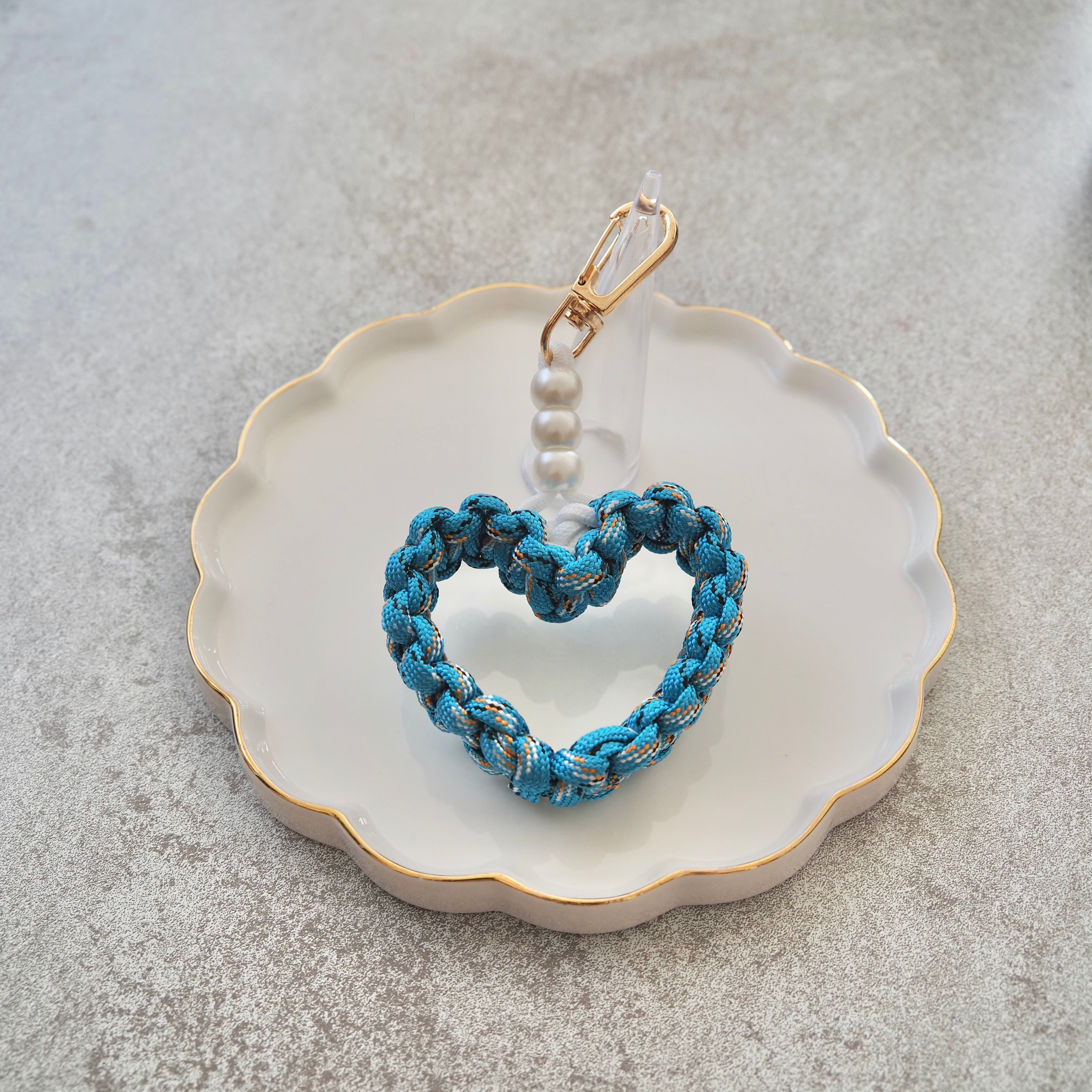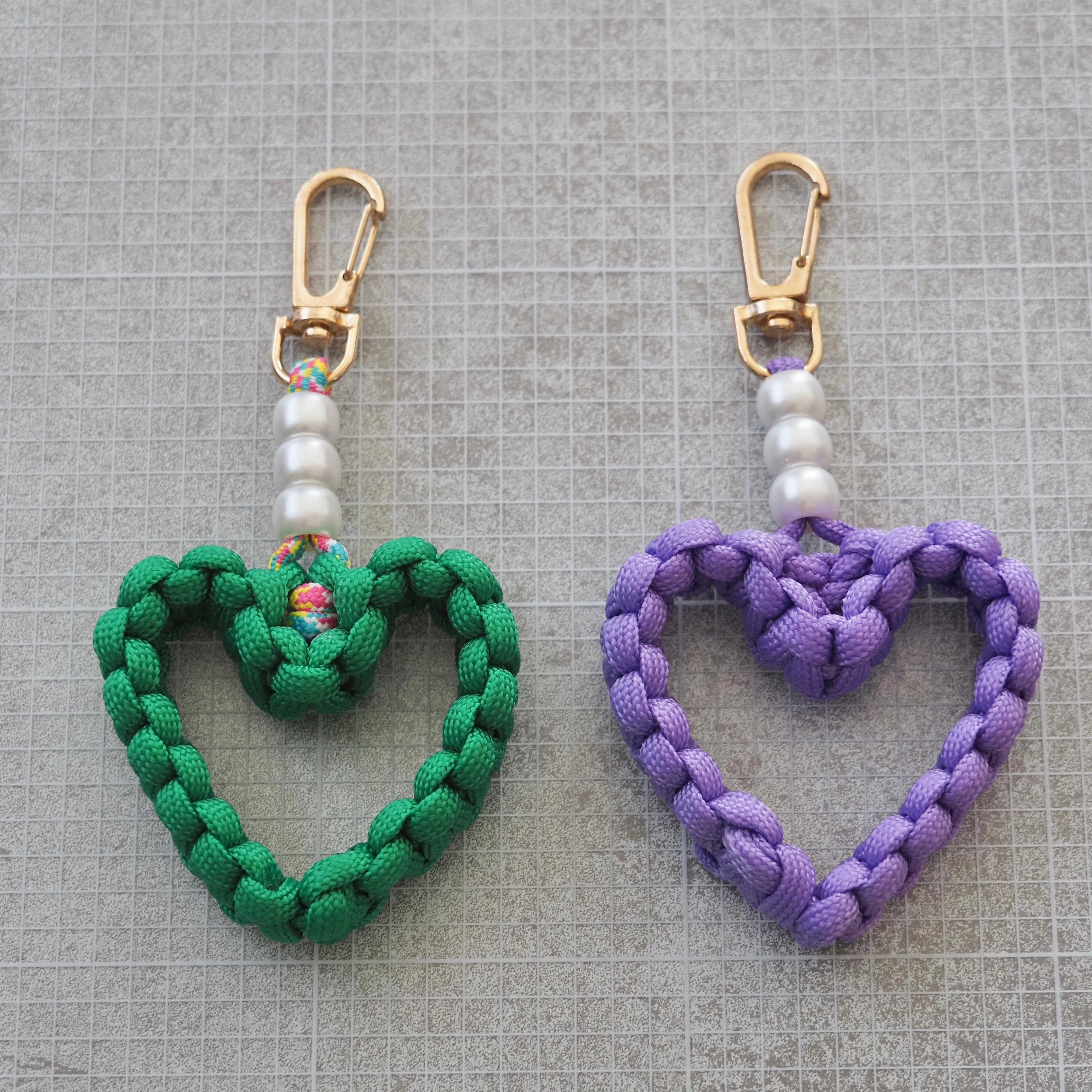 しっかり編み込んだパラコードで作ったハート型チャームに、パールをプラスして可愛さ&上品さをプラス✨