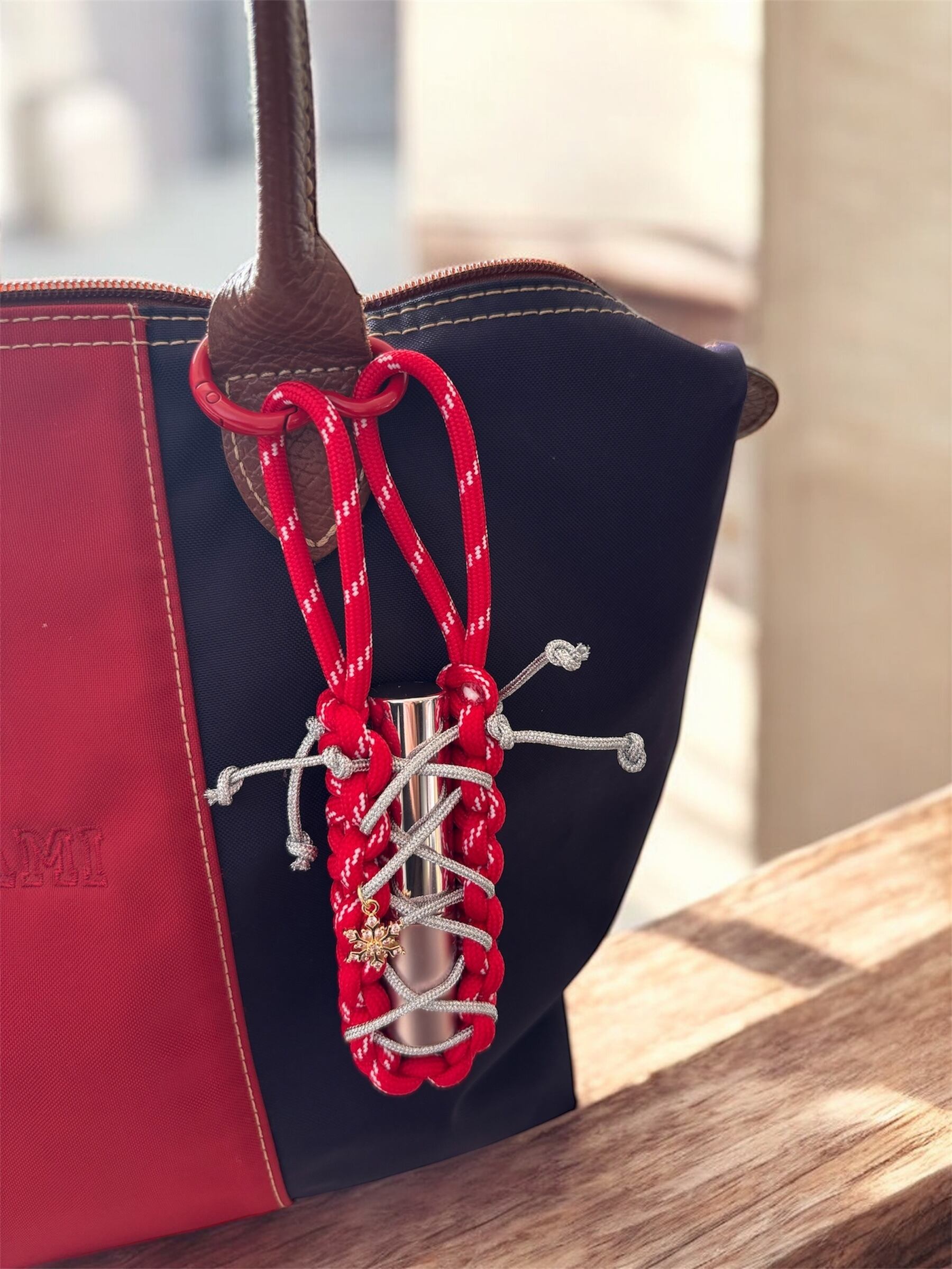 このリップホルダーは、耐久性に優れたパラコードを使用しており、おしゃれさと機能性を兼ね備えています♡
