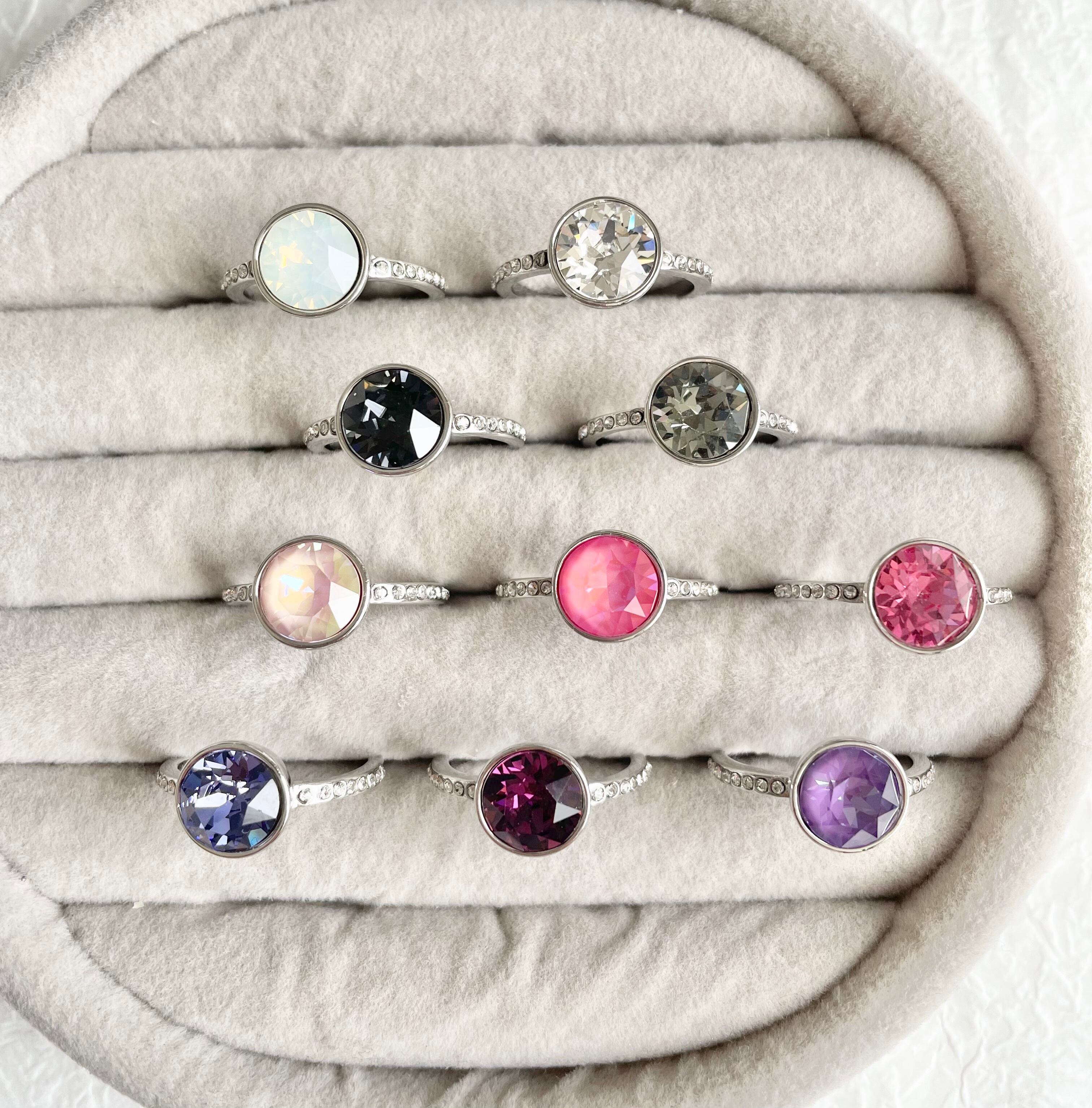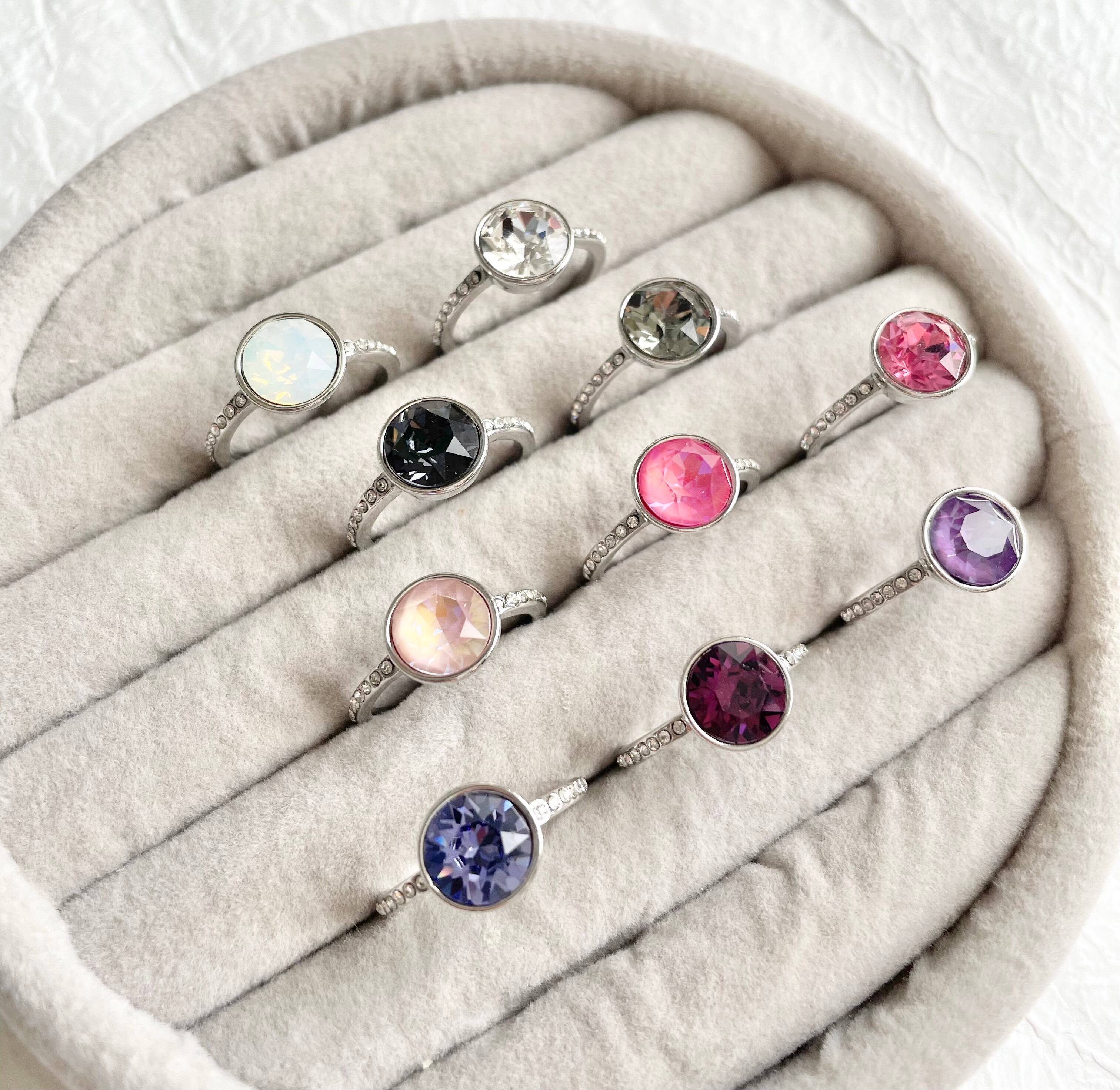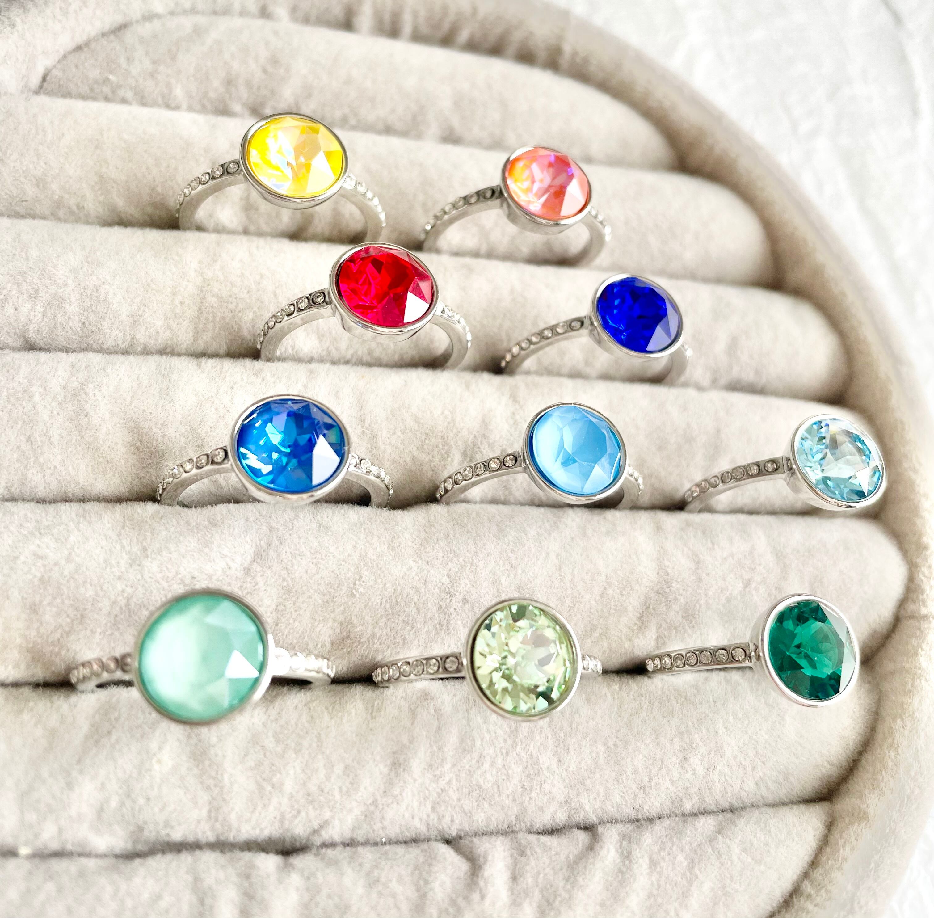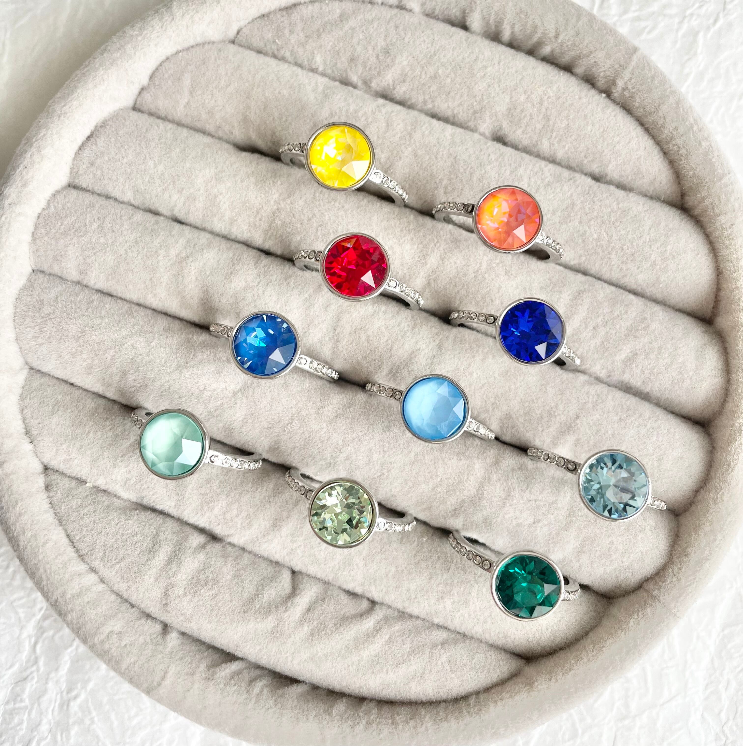 シンプルながらも華やかな輝きを放つメレ石座推し色リング♡